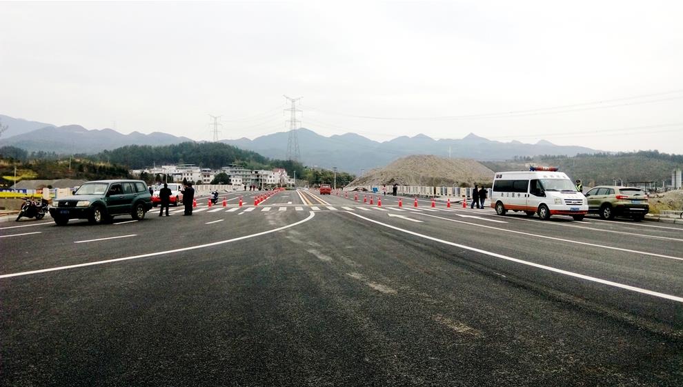 北川安昌河大桥全长211米,桥梁引道长232.32米,桥跨为5孔30米+2孔25米预应力箱梁;桥宽35米,双向六车道,2014年10开工建设,2016年3月通车。